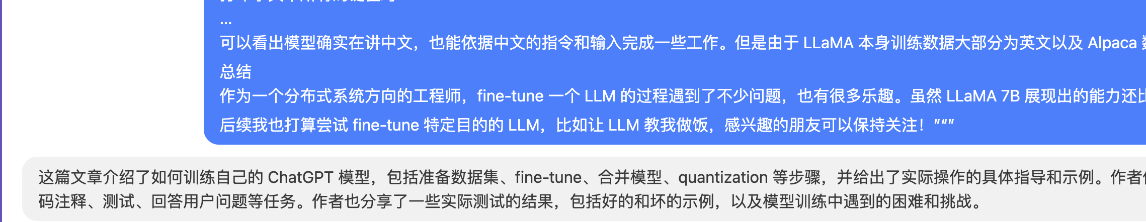 简单试验了一下, 效果不好。这种简单的总结都总结不出来。