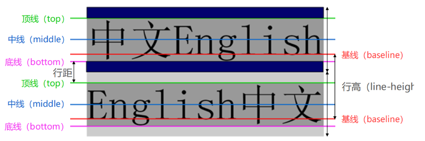 ◻ middle:行内级盒子的中心点与父盒基线加上 x-height 一半的线对齐