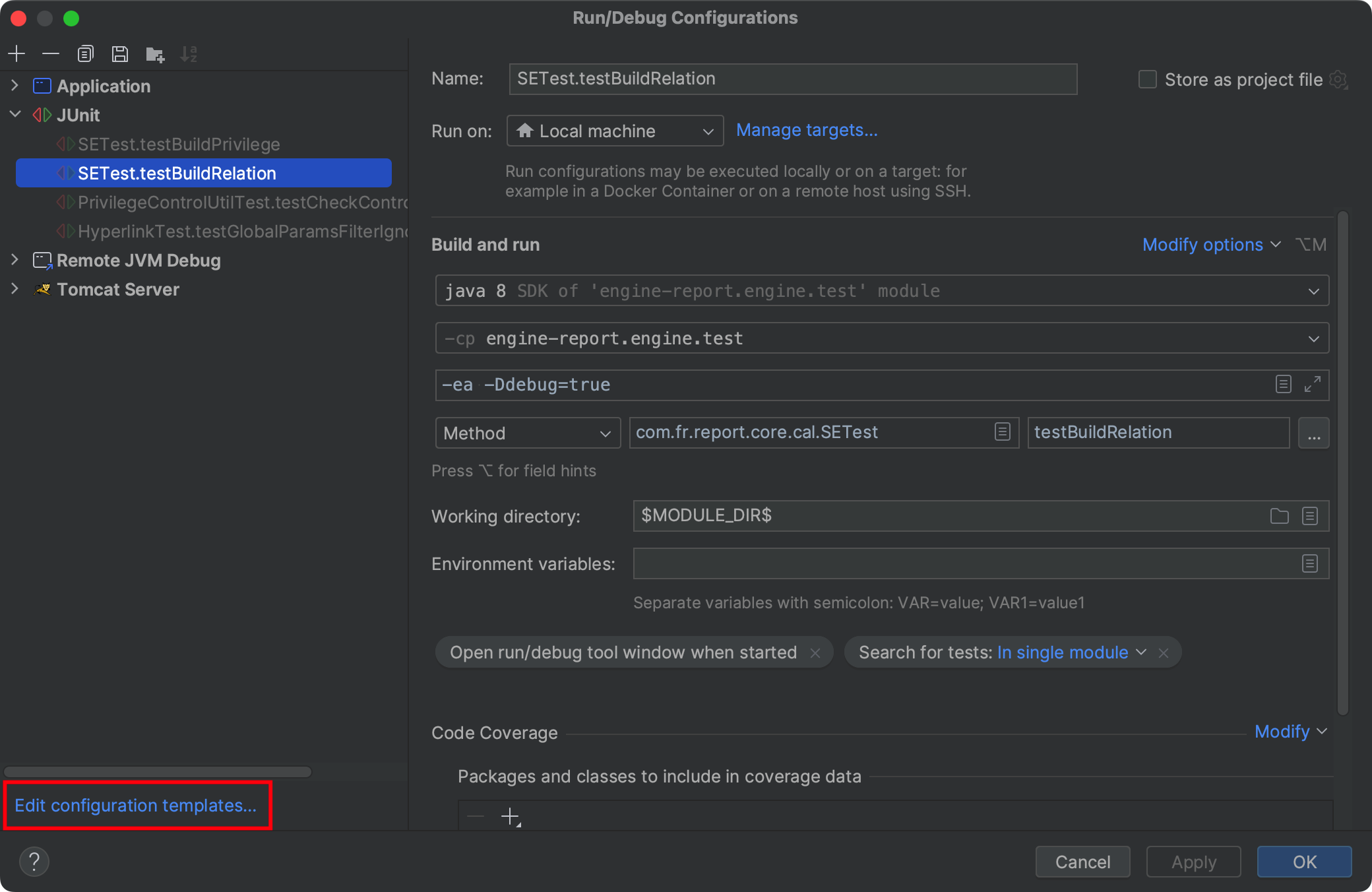 点击 edit configuration template 即可。