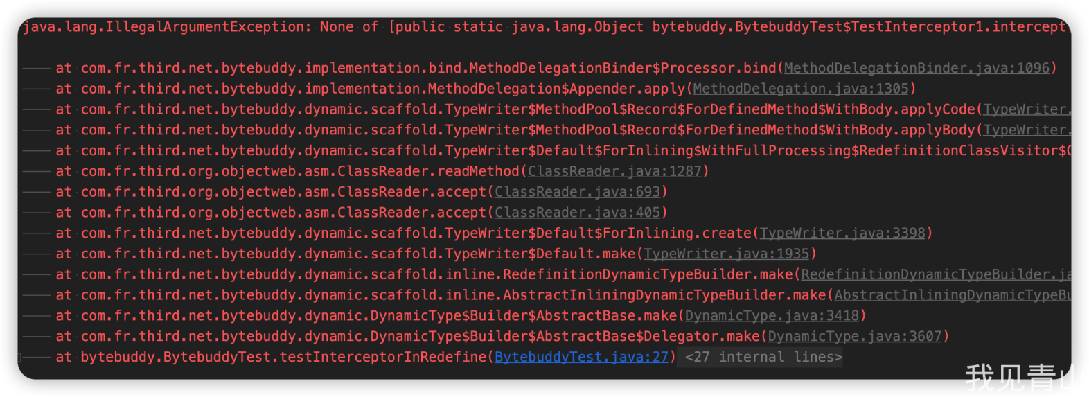 查查资料,StackOverFlow、Bytebuddy 官网、源码 Debug 一下。终于发现了问题