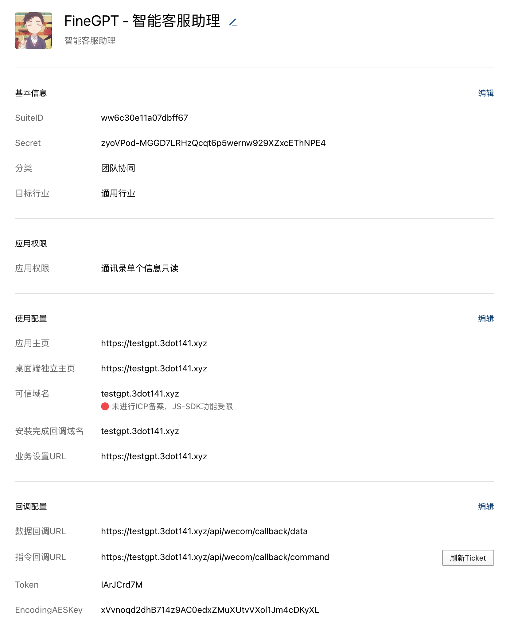 服务商应用,基本的说明和 个人应用 一致。因此就不额外讲述。