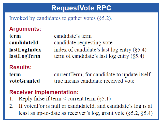 • RequestVote RPC : 用于Candidate收集选票