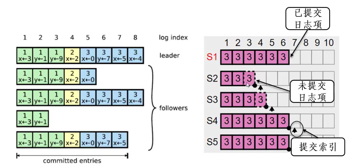 • 在复制日志项的时候,会携带上一个日志项的index和term序号,如果不匹配,会一直查找,直到匹配了才把日志复制过来