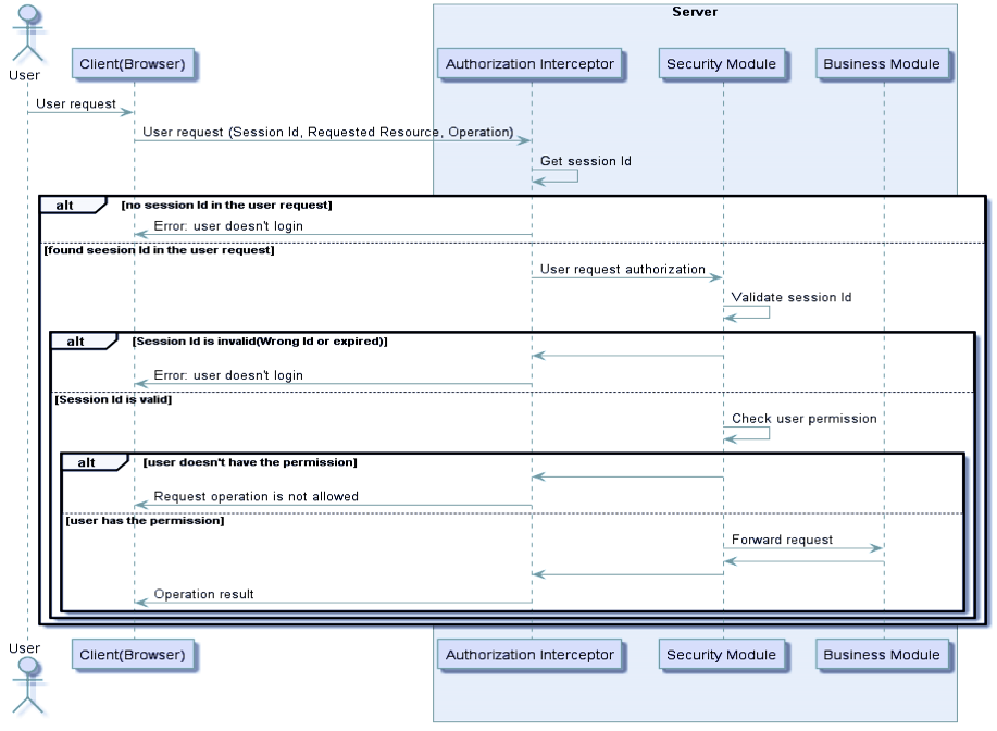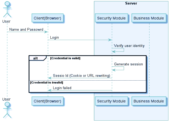 在传统的单体架构应用中,当用户登录时,应用程序的安全模块验证用户的身份。在验证用户是合法的之后,为用户创建会话(session),并且将会话 ID(session ID)与之相关联。服务器端会话存储登录用户信息,例如用户名,角色和权限。服务器将会话 ID 返回给客户端(浏览器)。客户端(浏览器)将会话 ID 记录为 cookie,并在后续请求中将其发送到应用程序。然后,应用程序可以使用会话 ID 来验证用户的身份,而无需每次都输入用户名和密码进行身份验证。当客户端(浏览器)访问应用程序时,会话 ID 与 HTTP 请求一起发送到应用程序。程序的安全模块通常会使用授权拦截器,此拦截器首先确定会话 ID 是否存在。如果会话 ID 存在,则它知道用户已登录。然后,通过查询用户权限,确定用户是否可以执行请求。
