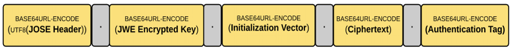 - JWE 规范引入了两个新元素(enc 和 zip),它们包含在 JWE 令牌的 JOSE 头中,enc 元素定义了秘文的加密算法,它应该是一个 AEAD(Authenticated Encryption with Associated Data)模式的对称算法, zip 元素定义了压缩算法,alg 元素定义了用来加密 cek(Content Encryption Key)的加密算法。