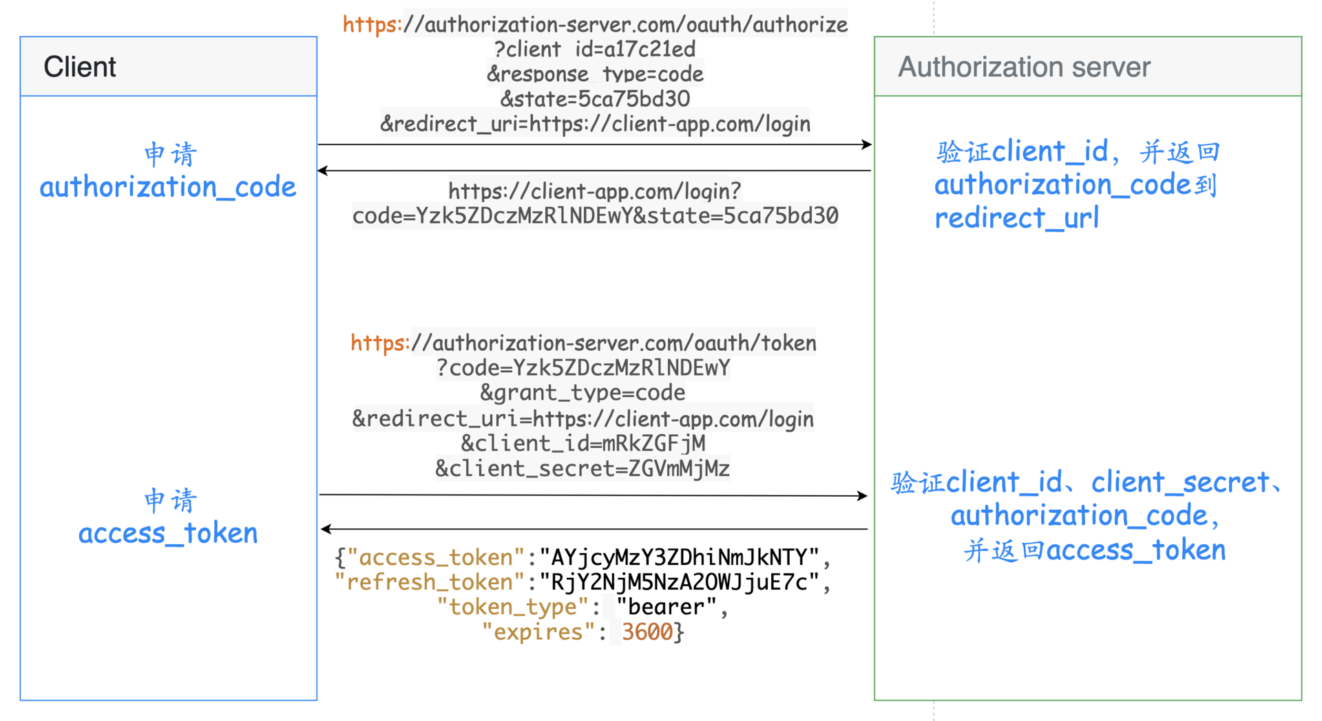 从我们的例子种不难发现,OAuth2.0 的关键之处,在于 Client 如何和 Authorization 进行交互,获取 token。
