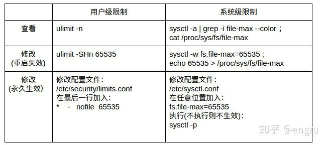 系统级:当前系统可打开的最大数量,通过 fs.file-max 参数可修改