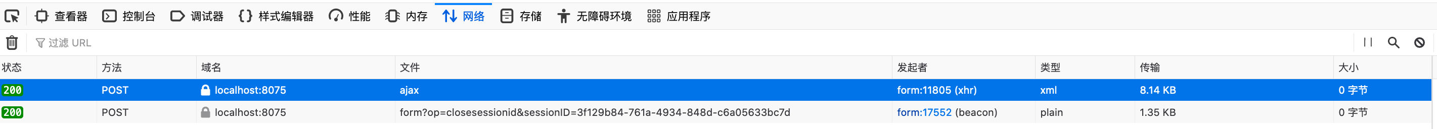 下图为在Firefox中的请求状态