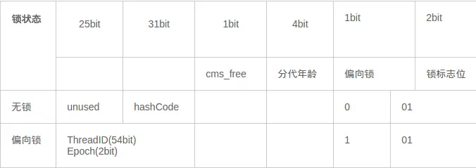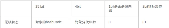 对象头的最后两位存储了锁的标志位,01 是初始状态,未加锁,其对象头里存储的是对象本身的哈希码,随着锁级别的不同,对象头里会存储不同的内容。