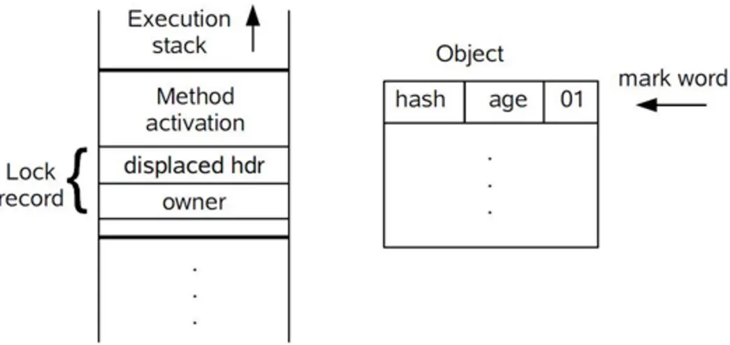 轻量级则存储指向线程栈中锁记录的指针。