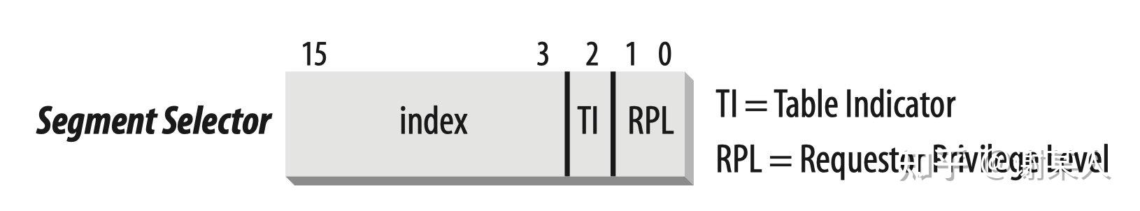 • TI (Table Indicator)标明段在GDT还是LDT中,在GDT中为0,LDT中为1