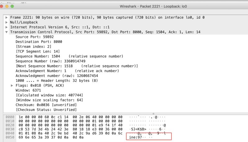 每一个TCP packet 的内容为我们写入的数据。