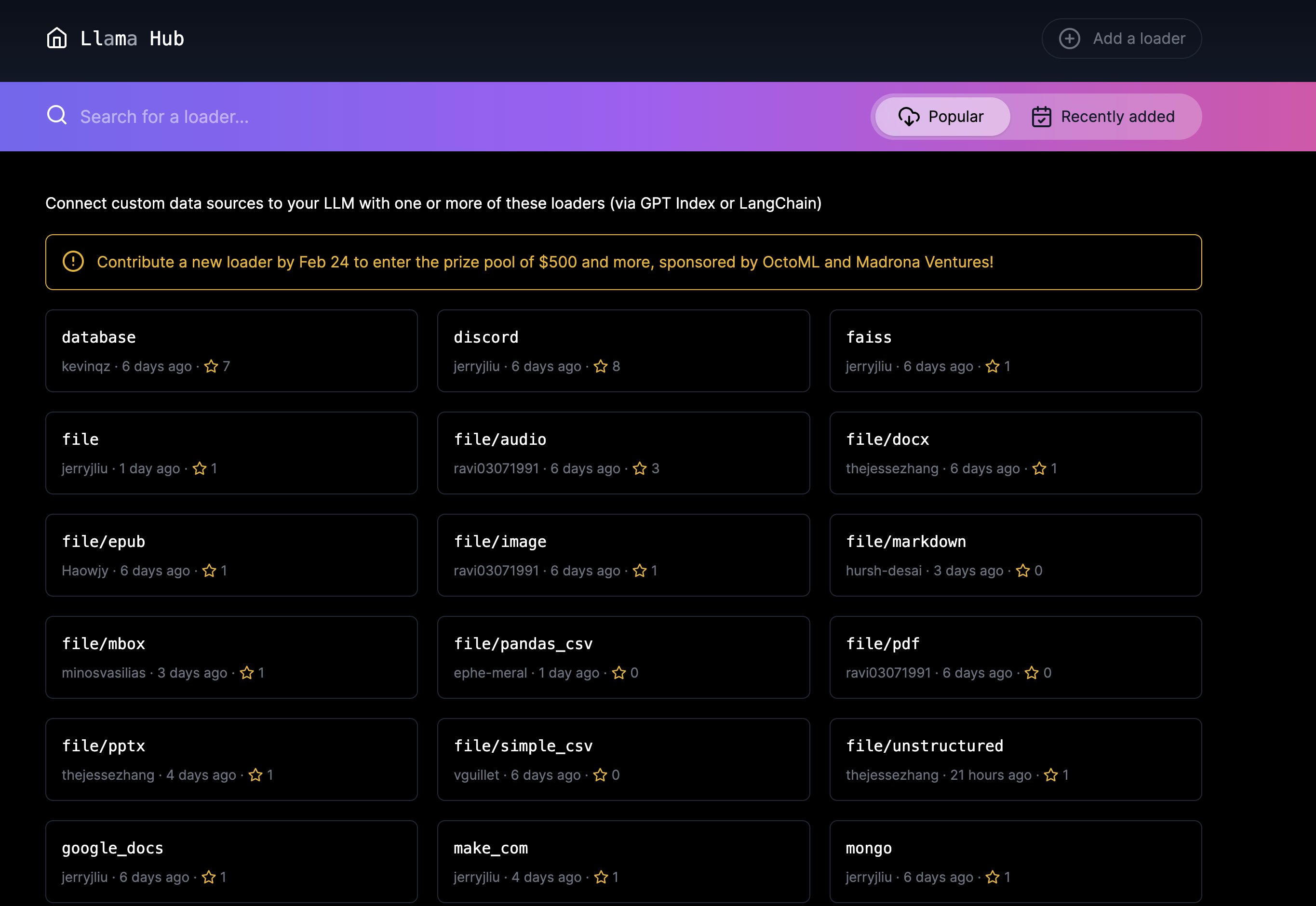 Our data connectors are offered through LlamaHub 🦙.