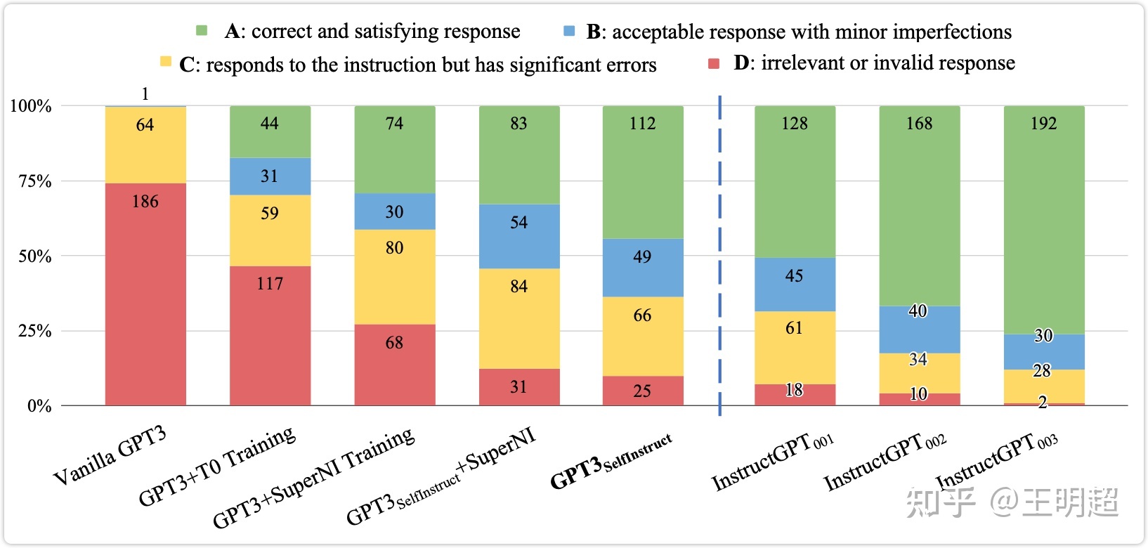 - 模型 GPT3Self-Instruct\text{GPT3}{\text{Self-Instruct}}\text{GPT3}{\text{Self-Instruct}}的效果与模型 InstructGPT001\text{InstructGPT}{001}\text{InstructGPT}{001} 的效果已经非常接近了;