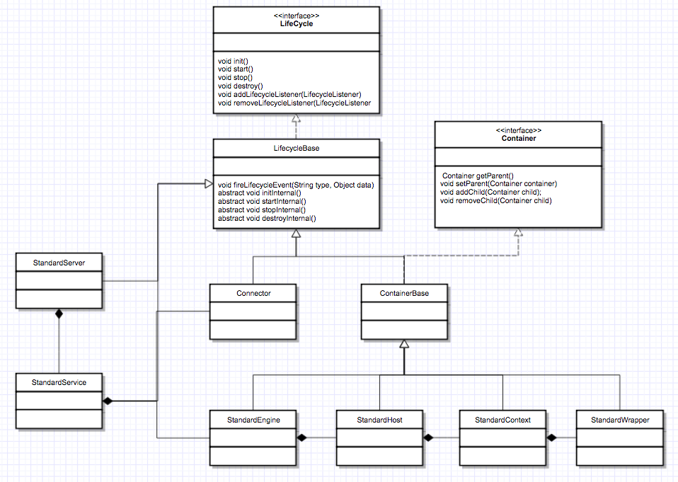 你可能会问,为啥要设计这么多层次的容器,这不是增加复杂度么?其实这背后的考虑是, Tomcat 通过一种分层的架构,使得 Servlet 容器具有很好的灵活性。因为这里正好符合一个 Host 多个 Context, 一个 Context 也包含多个 Servlet,而每个组件都需要统一生命周期管理,所以组合模式设计这些容器