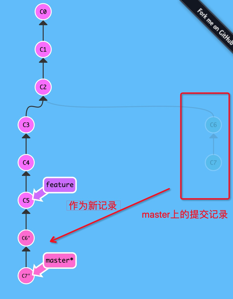 feature分支移动到master分支的 顶端 ,从而有效地整合了所有 master 分支上的提交。 -