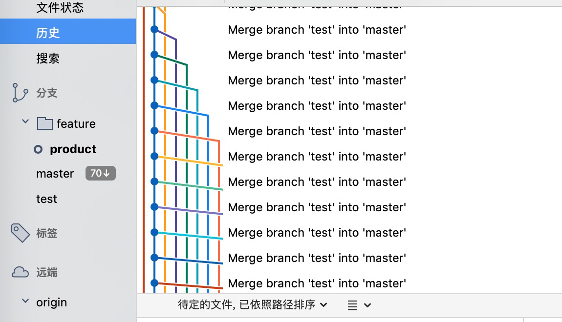 feature分支历史记录。不过这个问题可以使用高级选项git log来缓解