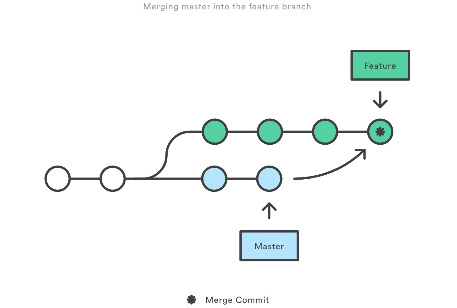 由上图可知,git merge 会在 feature 分支中新增一个新的 merge commit ,然后将两个分支的历史联系在一起