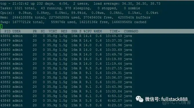 1. top 找出占用 CPU 高的进程 PID